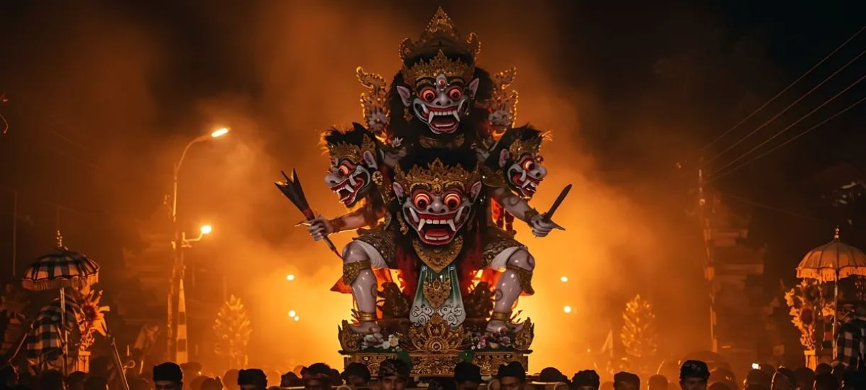 As you explore Bali’s towns and villages, there is a chance you might stumble upon a loud, colorful procession bearing what looks like a large statue of a bull, cow, or temple tower. When they reach a designated spot, they light the bull or tower ablaze.