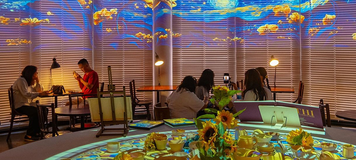 Save the best for the last! Starry Art & Café is a unique spot inspired by the legendary Vincent Van Gogh. Every corner of the café is carefully designed to be camera-ready, with Starry Night, Sunflowers, and The Bedroom projected across the ceiling and walls in a stunning 180° mapping display, while decorative items are scattered around the place.