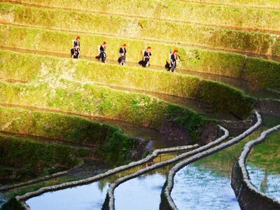 Sapa Valley located North of Lao Cai and just before the border of China, in the Tonkinese Alps. Sapa Town is the most famous place of the region and is where the local hill tribes bring their products amongst which are embroidery and knitwear to sell at the local market. Sapa also has spectacular views of the famous rice terraces and its quaint little church offering incredible photographs. Sapa Valley is also home to Vietnam’s highest mountain, the Fan Si Pan Mountain 3143m above sea level is an impressive sight to all and easy to see why it is called the Rooftop of Indochina. Here you will also find Hoang Lien National Park, home to some of Vietnam’s rarest species of animals such as the spike frog only found here, also its flora system is very perse and is home to some flowers and trees only found in this region due to its unique climate. Also located on the valley are some of the smaller remote villages such as Sin Chai, Seo Mi Ty, Ta Trung Ho, Thanh Phu and Ban Ho, here you will find the ethnic hill tribes such as the black Hmong and Red Dao tribes. The local life here hasn't changed much and you will be able and invited to watch how they make the produce before carrying it to market.