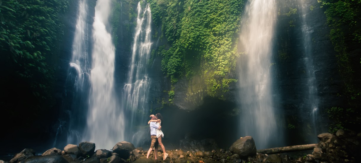 Bali ist stolz darauf, einige der herrlichsten Landschaften der Welt zu haben, mit atemberaubenden türkisfarbenen Stränden, üppigen Dschungeln und poetischen Reisfeldern. Und Mutter Natur auf Bali schafft es immer wieder, den Abenteuergeist in uns zu wecken, indem sie verschiedene aufregende Aktivitäten wie Dschungel-Trekking und Wildwasser-Rafting anbietet. Aber verpass nicht die aufregendste und zugleich romantischste Aktivität: die Jagd nach den Wasserfällen.