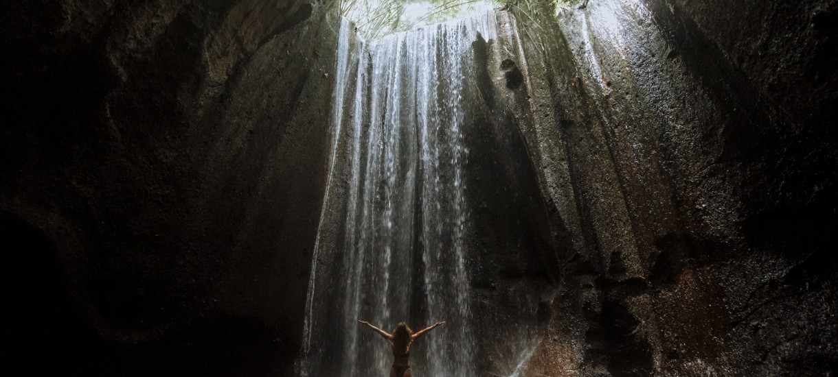 Anders als der Tegenungan ist der Tukad Cepung Wasserfall ein echtes verstecktes Juwel auf Bali, das noch darauf wartet, entdeckt zu werden. Dieser Wasserfall liegt gut versteckt zwischen Felsformationen und hohen Klippen, so dass schon der Weg dorthin ein Abenteuer für sich ist. Nachdem du den Eingang erreicht hast, müsst du etwa 30-40 Minuten lang durch eine enge Höhle und ein paar hundert Stufen hinuntergehen, um den Wasserfall zu erreichen. Dort angekommen, bist du von der Außenwelt abgeschnitten. Alles, was du hören kannst, ist die Stimme der Natur: das Wasser, das von oben herabfällt, das Zwitschern der Vögel ...